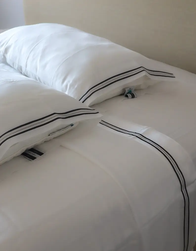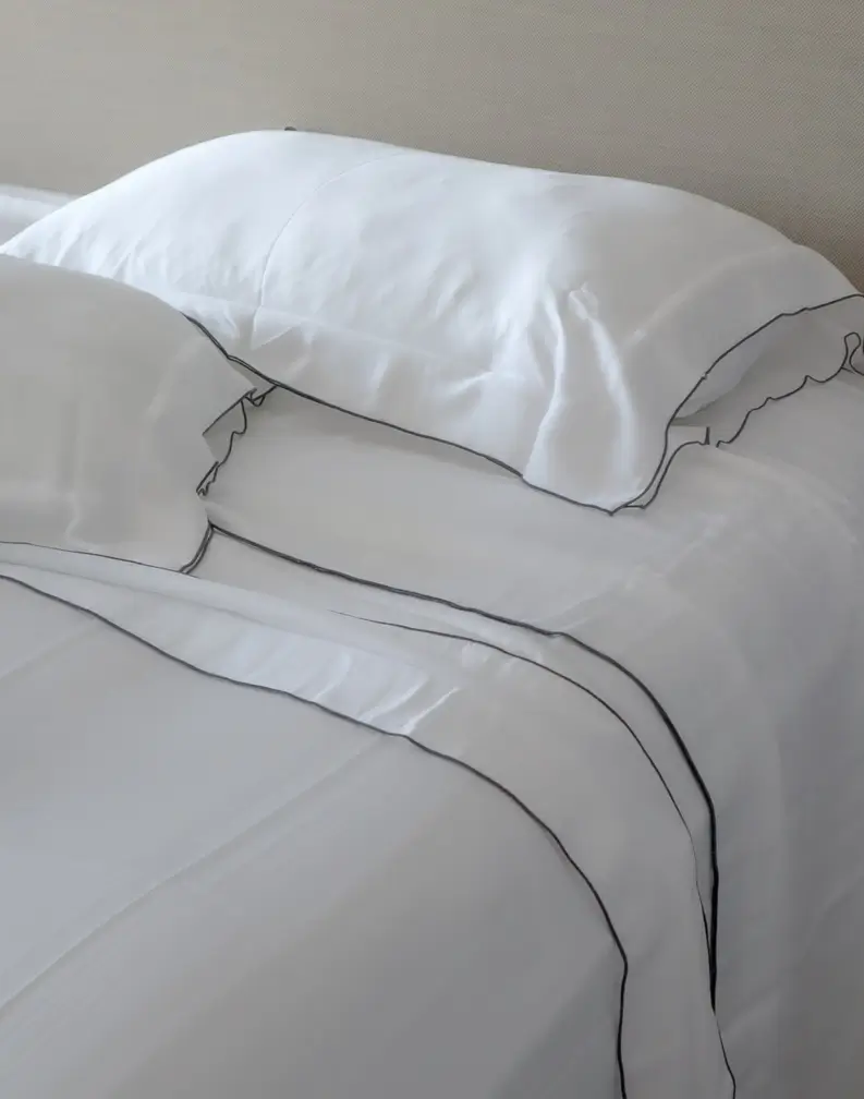The Almeria III Duvet Cover Set marks a new chapter in our iconic Almeria journey; crafted from 300 thread count TENCEL fibers for a silky, breathable feel and eco-conscious luxury. With two signature embroidery styles—Uno and Tres—it redefines rest with elegance, sustainability, and deeper wellness.
